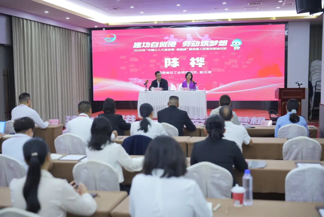10月23日,2025年“中国工人大思政课?海南篇”暨劳模工匠进机关进企业进校园宣讲培训开班仪式在海口举行。海南省总工会党组成员、副主席陈桦出席开班仪式并讲话,来自全省各条战线的近30名劳模工匠宣讲团成员齐聚一堂,参加本次培训。