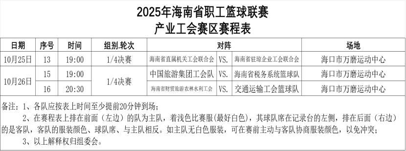2025年海南省职工篮球联赛已进入最激动人心的淘汰赛阶段!产业工会赛区的八支精英队伍将于本周末(10月25日至26日)汇聚海口市万磨运动中心,向最终的四强荣耀发起冲击!狭路相逢,勇者必胜,每一场都是不容有失的生死之战!