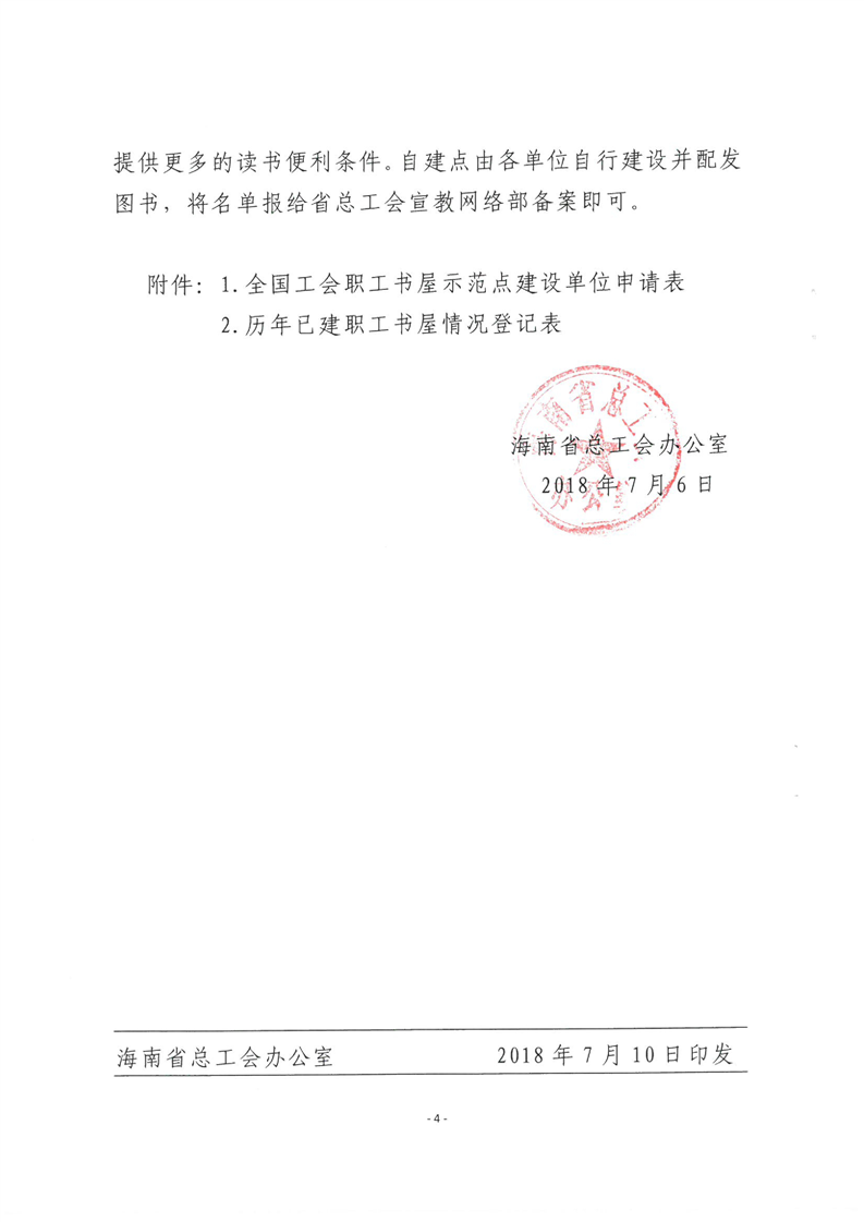 海南省总工会办公室关于申报2018年全国工会职工书屋示范点的通知琼工办发(琼工办发〔2018〕116号)