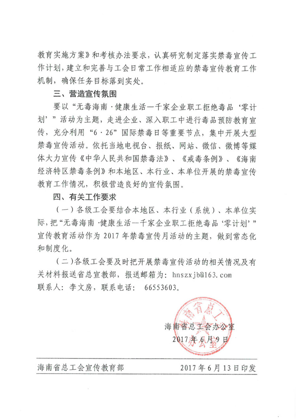 海南省总工会办公室关于开展 “千家企业职工拒绝毒品‘零计划’”主题活动的通知